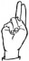 На ћирилици написано СИМОНА КРГА састоји се из 10 слова [?]. Исписано ћириличном једноручном азбуком за глувонеме: